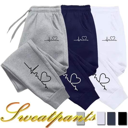 Hot Sales Womens Sweatpants Daily Casual Pants High Quality Fitness Tracksuit Trousers Heart Print Street Sport Jogging Pants