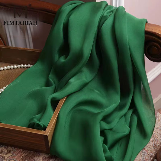100 Real Silk Scarf Women Silk Chiffon Scarf Dark Green Foulard Femme Lady Silk Shawls Wraps for Ladies Solid